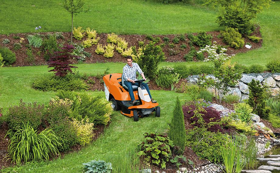 A STIHL traktorok a kompakt kialakításuknak köszönhetően jól manőverezhetőek, a fákkal, cserjékkel tarkított kertek nyírására is alkalmasak.