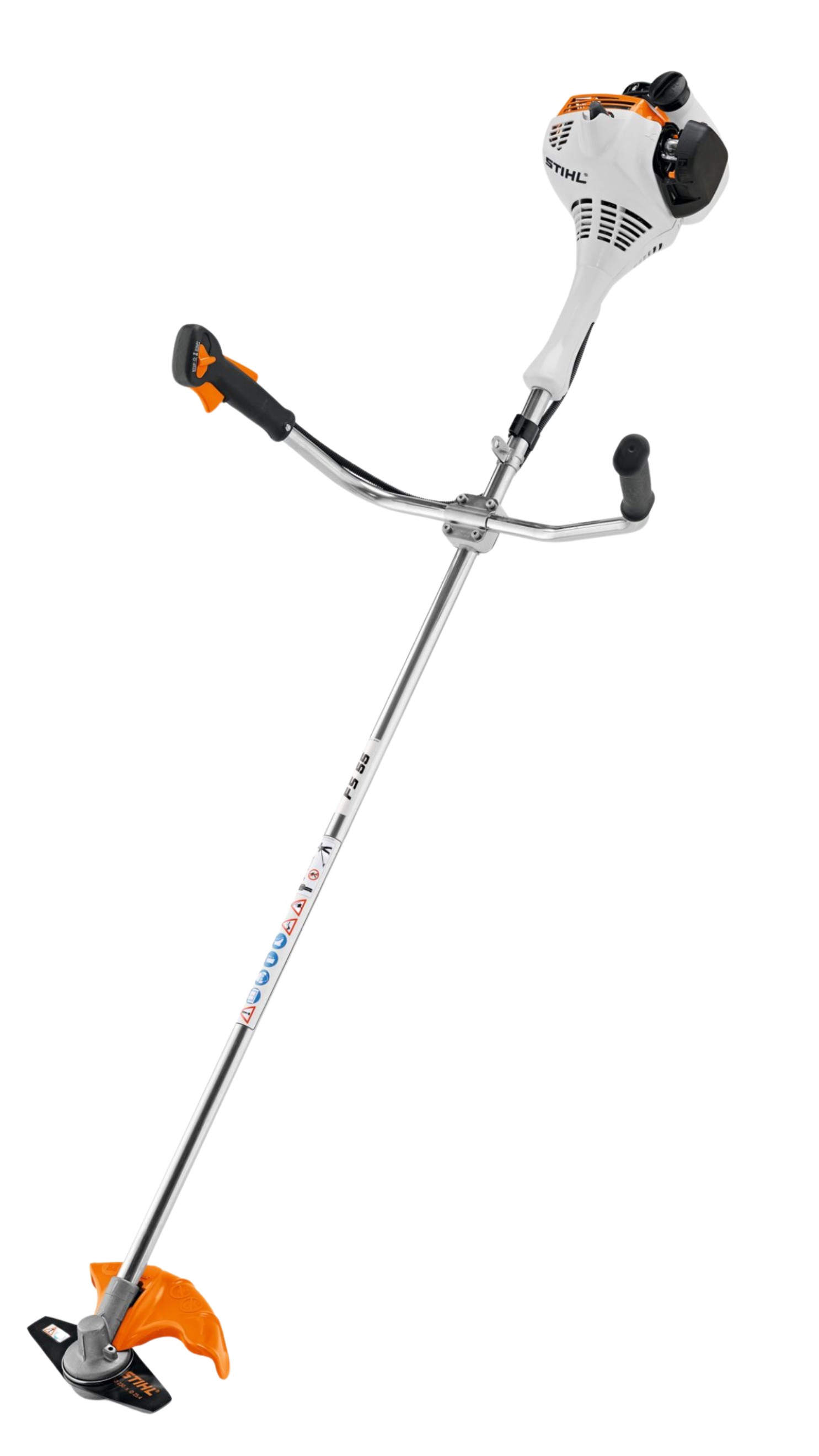 A fű vágásánál a kétkaros fogantyú, vagy más néven ergonomikus fogantyú, lehetővé teszi a természetes kaszáló mozdulatokat. Beállítása egy szorítócsavarral történik. Nagyobb területek nyírási munkáihoz a kétkaros fogantyú optimális választást jelent. A kényelmes munkavégzést az alapfelszereltséghez tartozó vállheveder segíti. Az FS 55 a modellhez illő vágóeszközzel gazos fű, nád és csalán vágásához is használható.