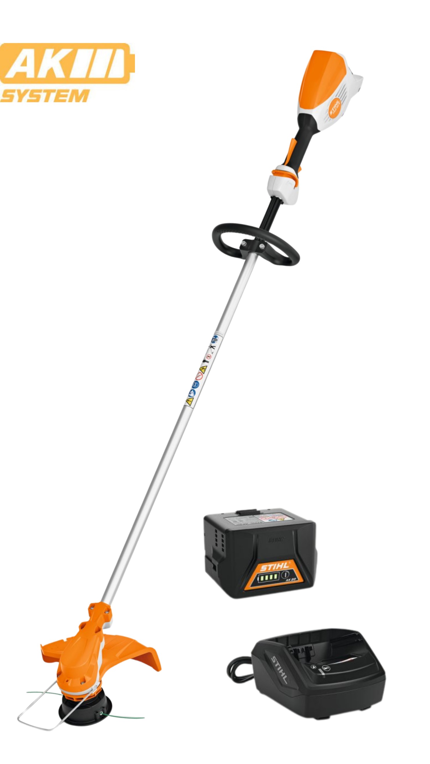 A hatékony EC-motor egyenletes munkateljesítményt biztosít. A kiváló egyensúly, a körfogantyú, a puha markolat és a fokozatmentes fordulatszám-szabályozás a kényelmes munkavégzést segítik. A távtartó kengyel megóvja a növényeket (fák, bokrok), illetve védi a nyírófejet az akadályok mentén történő nyírás során.