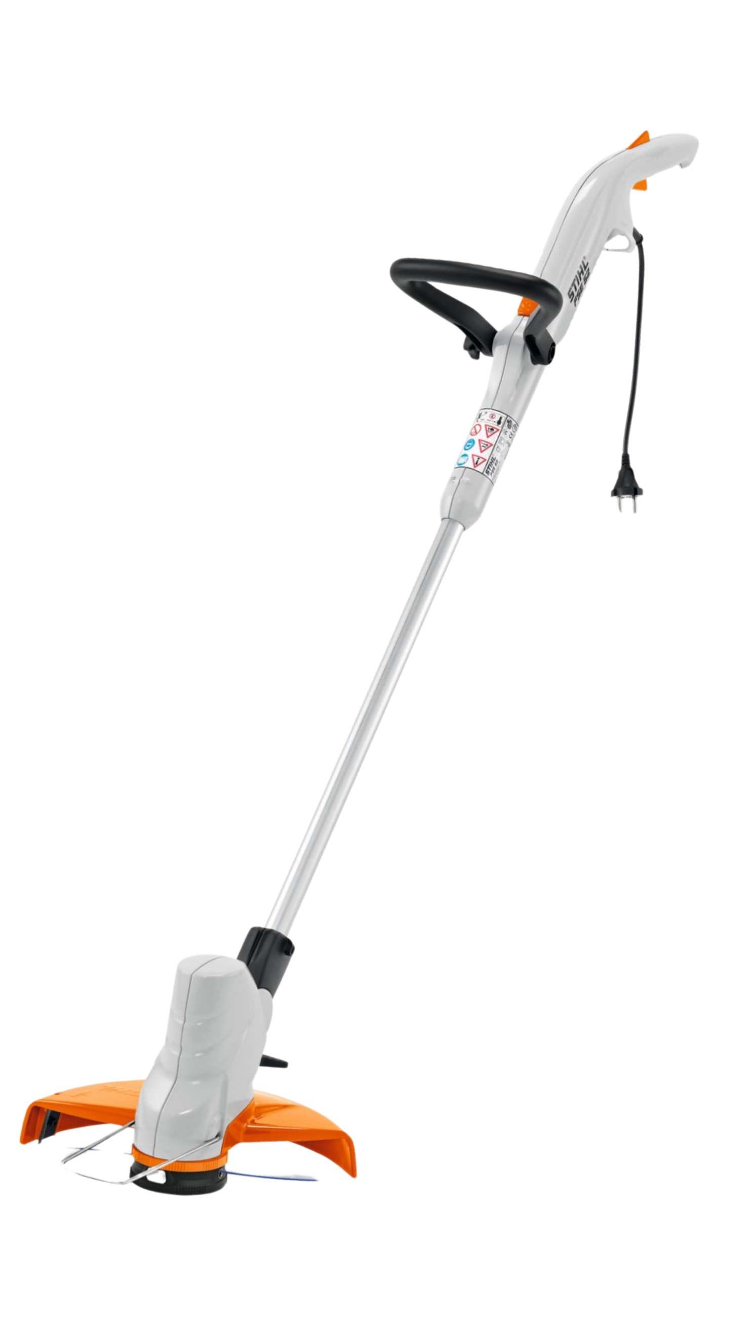 Az ergonomikus munkavégzés érdekében az állítható körfogantyú a felhasználó testmagasságához igazítható. A beállításhoz szerszám használata nem szükséges. A dönthető nyírófejjel nehezen hozzáférhető helyek nyírása is, például bokrok vagy sövények alatt, könnyedén elvégezhető. A távtartó kengyel a kaszálás során megvédi a fákat és bokrokat a forgó damillal szemben, a damil a kengyelen belül forog. A kábel-tehermentesítő gondoskodik róla, hogy a gép meghúzásakor a dugaszoló csatlakozó véletlenszerűen szét ne kapcsolódjon.
